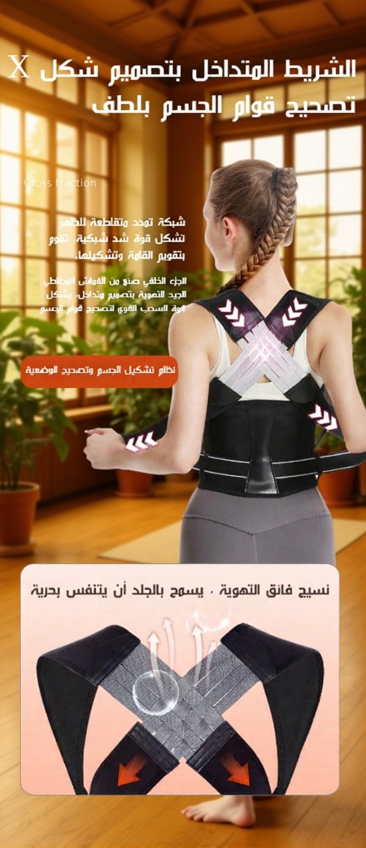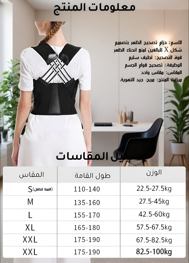 حزام تصحيح الظهر بتصميم شكل X للبالغين لمنع انحناء الظهر